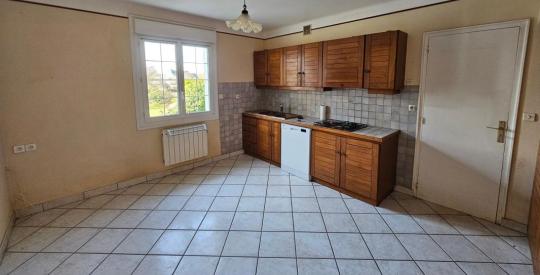La maison se compose au rez-de-chaussée : une entrée sur pièce de vie avec insert bois de 40 m², un hall desservant une cuisine aménagée, une chambre, une véranda, une salle d'eau, un w.c séparé ; A l'étage : un palier, trois chambres, une salle d'eau et un w.c.