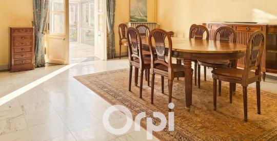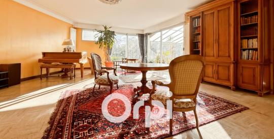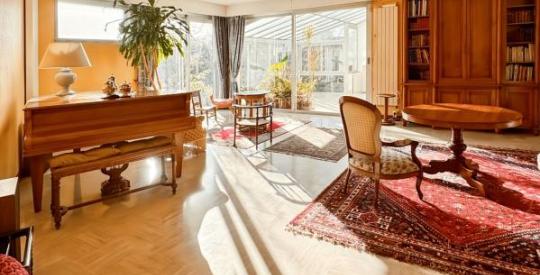Ce hall d'entrée vous amène à un magnifique salon de 50 m2 lui même attenant à une salle à manger. Ces deux superbes pièces communiquent toutes deux à un grand jardin d'hiver, leur garantissant une luminosité permanente. Ce puits de lumière, régulièrement baigné de soleil, permet d'accéder à la terrasse et à un superbe jardin arboré.