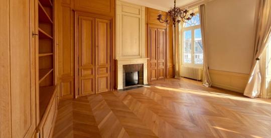 L'ensemble est sublimé par un salon-séjour de 60 m² en parquet bois massif, baigné de lumière grâce à ses belles ouvertures et agrémenté de placards intégrés. Un espace de réception rare par ses volumes, idéal pour recevoir et profiter d'un cadre de vie aussi élégant que chaleureux.