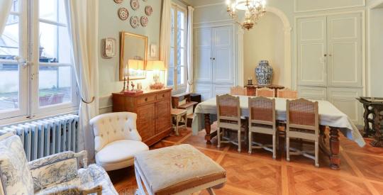 Au premier étage, vous trouverez trois grandes pièces de réception, dont une salle à manger ouvrant sur une terrasse exposée SUD, ainsi qu'une cuisine qui donne également accès à cet espace extérieur.