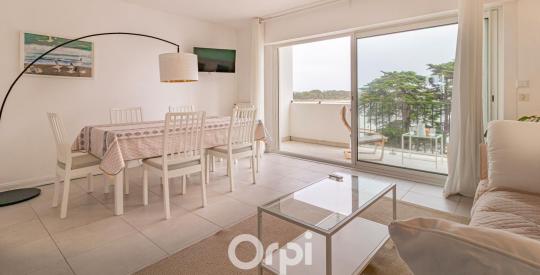 D'une superficie généreuse de 73,6 m² Carrez et 76 m² utile , l'appartement se compose d'une entrée avec placards, d'un séjour-salon lumineux ouvrant sur un balcon de 8 m² avec vue mer et parc, de trois chambres avec placards dont une avec vue mer, d'une cuisine aménagée et entièrement équipée, d'une arrière-cuisine en loggia avec lave-linge, d'une salle d'eau et de WC séparés.
