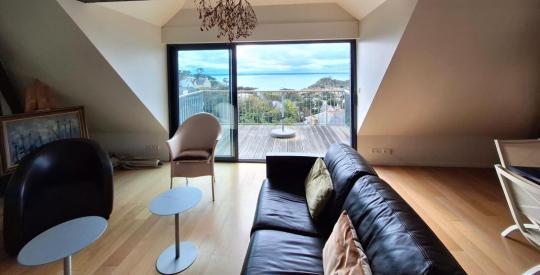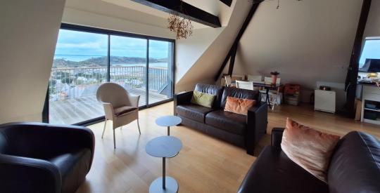 Les agence ORPI vous proposent cet appartement en duplex avec sa très belle vue mer avec les commerces, les plages et le port à pied. Il se trouve au dernier étage (ascenseur) et vous pourrez profiter de la terrasse, exposée Sud-Ouest avec une superbe vue mer !
