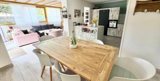 Le tout pouvant être ouvert et réuni. Agréable jardin clos et arboré de 1760m² avec espace stationnement, terrain de pétanque et terrasse de 70m2.