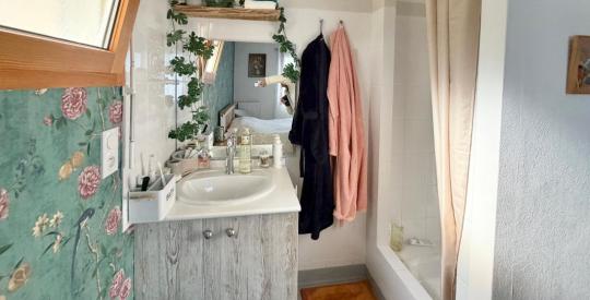 Logement indépendant composé d'un espace de vie, cuisine aménagée et équipée, cellier, chambre et sde privative. Possible rentabilité locative.