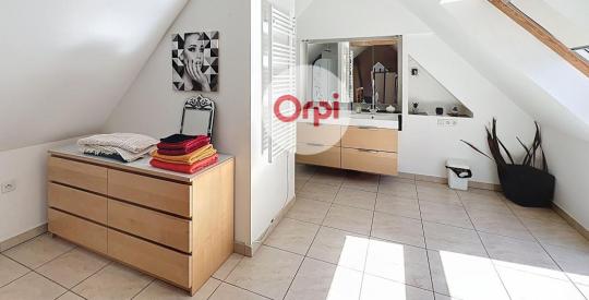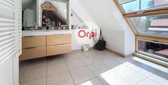 A l'étage : Une superbe pièce "cathédrale" de 26 m2 avec une salle de bain privative, un WC, et un dressing.