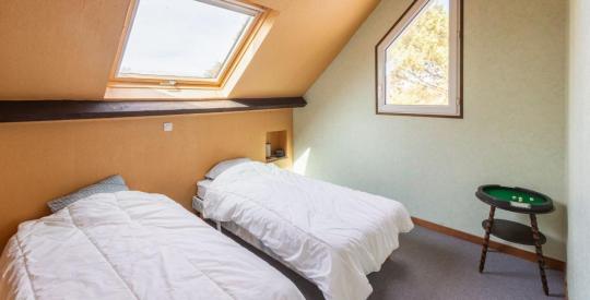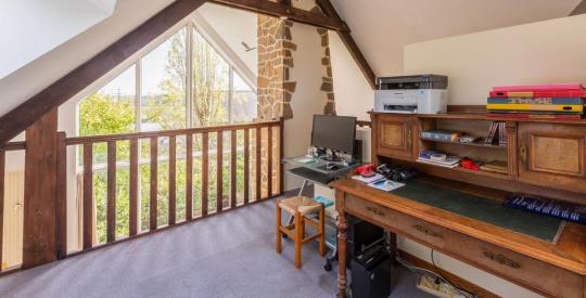 L'étage supérieur se compose d'une mezzanine aménagée en bureau avec vue sur la mer, deux chambres et une salle d'eau avec WC.