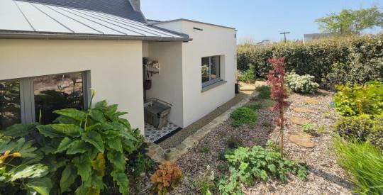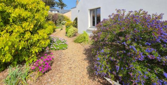 Le jardin paysagé entoure la maison tout en restant facile d'entretien. Clôturé, il offre un cadre de vie intime. Profitez de la terrasse exposée plein SUD, tout en admirant une agréable vue mer lointaine. Un atelier/bureau indépendant pouvant être transformé en futur studio indépendant, déclaré en superficie habitable d'environ 31 m² offrant un potentiel supplémentaire non négligeable. Un nouveau DPE est en cours d'élaboration pour inclure l'atelier à la superficie habitable.
