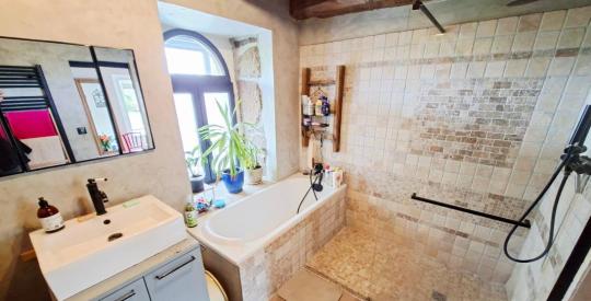 Derrière les murs en pierre, la rénovation a su préserver l'essentiel tout en intégrant un niveau de confort attendu aujourd'hui :