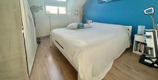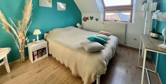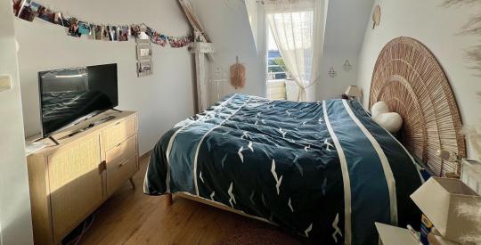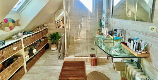 À l'étage, l'espace nuit accueille trois belles chambres, une seconde salle d'eau et un grenier aménageable, offrant de multiples possibilités : bureau, espace bien-être, chambre supplémentaire ou salle de jeux.