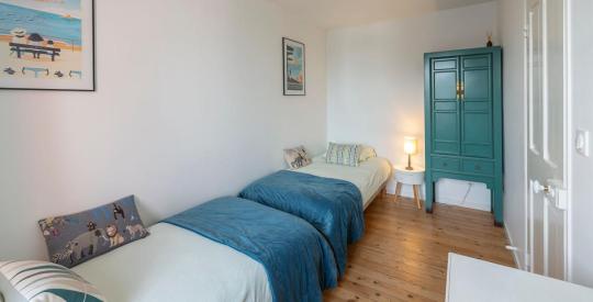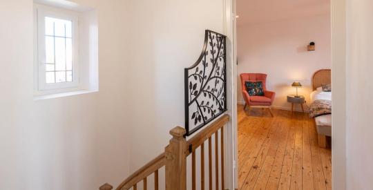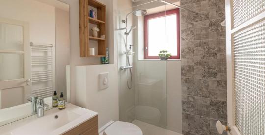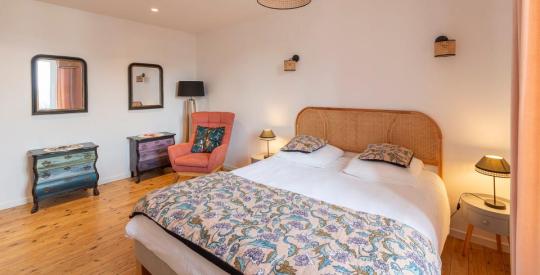 À l'étage, l'espace nuit se compose de deux belles chambres sur parquet massif, véritables cocons, ainsi que d'une salle d'eau/wc élégante et moderne.