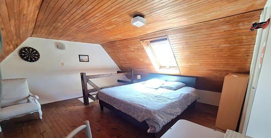 Cette deuxième maison comprend : une pièce de vie, une salle de bain avec WC, ainsi que deux chambres en enfilade à l'étage.