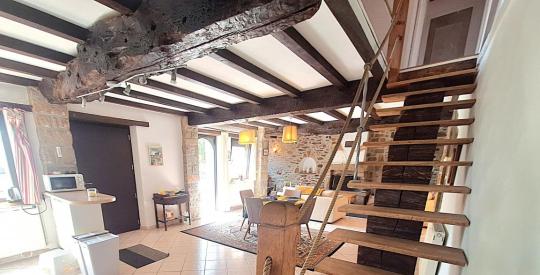 À seulement cinq minutes de toutes les commodités de Lanmeur, blottie au bout d'une impasse confidentielle, cette élégante propriété en pierre — dont les origines remontent vraisemblablement au XVIIIe ou XIXe siècle — offre deux maisons en pierre et un cadre de vie aussi rare que recherché, à moins de 10km des plages de Locquirec et Plougasnou. Ici, aucun vis-à-vis, aucun voisin à moins de 300 mètres. Autour, des pâtures, des sous-bois, le silence. Seul le chant des oiseaux vient troubler la quiétude des lieux...