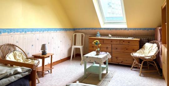 Au rez-de-chaussée, vous découvrirez un séjour convivial, une cuisine ouverte, ainsi qu'un cellier pratique pour le rangement du quotidien. Vous trouverez une chambre, une salle d'eau et un WC séparé qui complètent ce niveau, permettant une vie de plain-pied très appréciable.