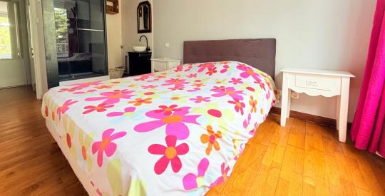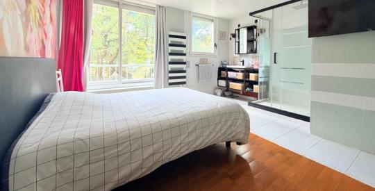 Au premier étage avec ascenseur, il offre une terrasse agréable, un séjour lumineux avec cuisine ouverte et deux chambres avec chacune sa salle d'eau sur l'arrière.