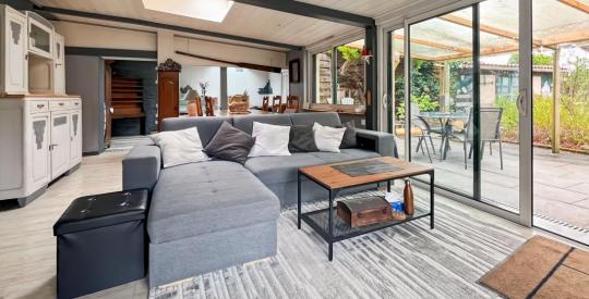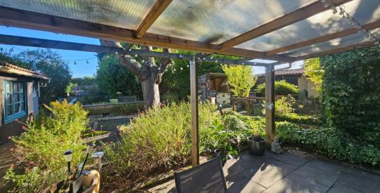 Lumière & Nature : Une grande véranda conviviale s'ouvre sur un jardin arboré, véritable écrin d'intimité sans vis-à-vis.