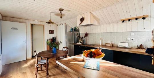 d'un séjour, d'une salle à manger, cuisine ouverte , WC, salle d'eau
