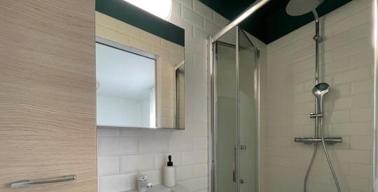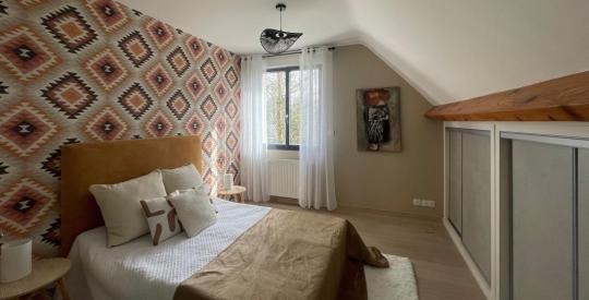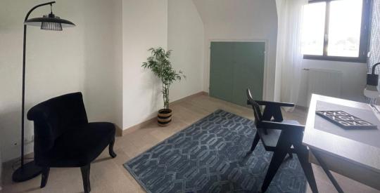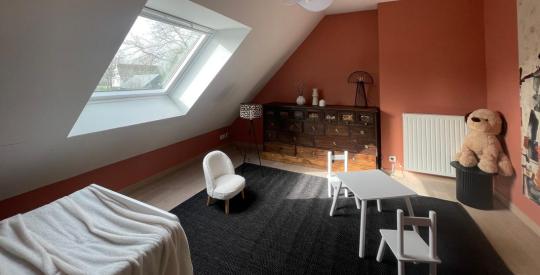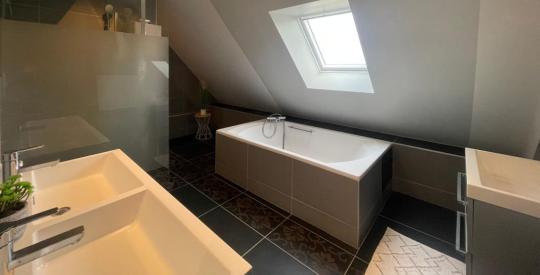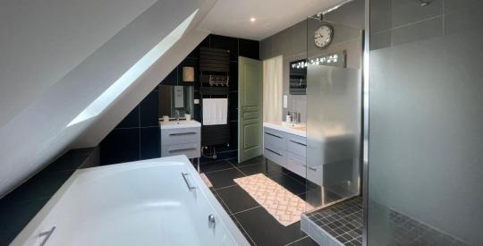 A l'étage, un pallier dessert un bureau, 3 chambres, une salle d'eau avec douche et baignoire.