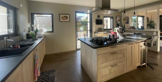 Un double garage de 53M2, un garage motos/vélos de 23 M2 et un cabanon complètent le terrain entièrement clôturé et paysager.