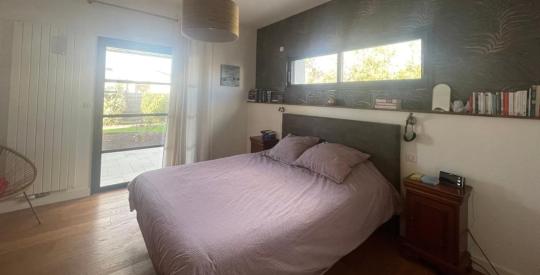 A l'étage nous trouvons deux grandes chambres avec leur salle d'eau, une plus petite chambre et une mezzanine.