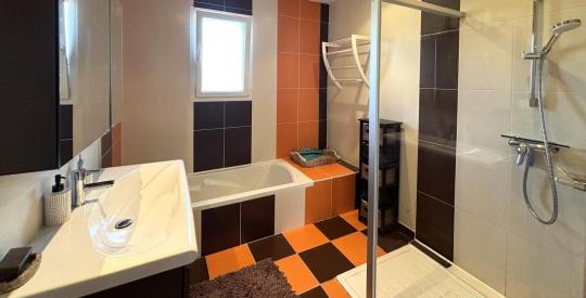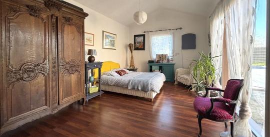 Les + : Maison à faible consommation énergétique (DPE B), pompe à chaleur aérothermie avec chauffage au sol, plusieurs possibilités d'aménagements pour la chambre du RDC, possibilité de faire une cinquième chambre à l'étage, 2 WC, et un garage de 35 m2 avec un faux grenier et une cave à vins.