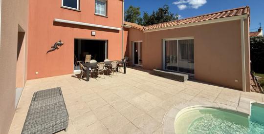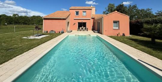 Un grand jardin avec une terrasse exposée Ouest, une piscine chauffée (9x4,5m) avec une pompe à chaleur indépendante, et un garage viennent compléter ce bien, le tout sur un terrain de 1 300 m2.