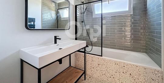 L'ensemble donne accès à une terrasse plein sud, idéale pour profiter des beaux jours, avec en bonus un jacuzzi pour se détendre face au jardin.