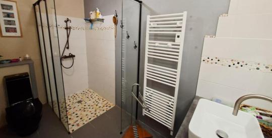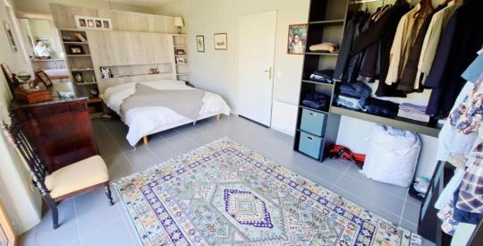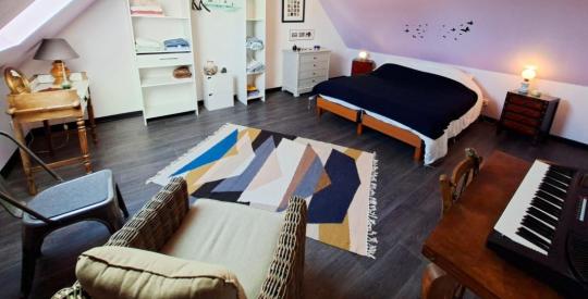 À l'étage, une spacieuse mezzanine dessert trois chambres de plus de 15 m² et un WC, offrant de beaux volumes et une vraie fonctionnalité pour accueillir famille et amis.
