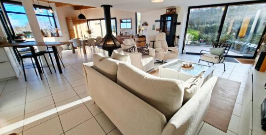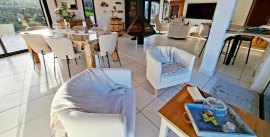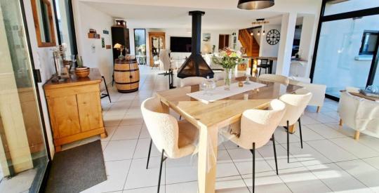 La maison est intégralement chauffée par pompe à chaleur, via un chauffage au sol, garantissant douceur, rendement et efficacité énergétique tout au long de l'année.