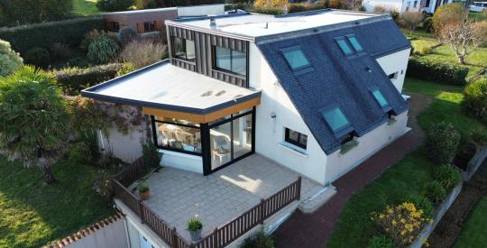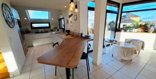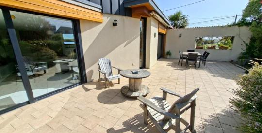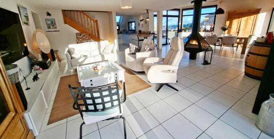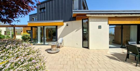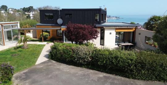 Dans l'un des panoramas les plus recherchés du Finistère, face à la splendide baie et au port de Locquirec, se dévoile cette maison d'architecte édifiée en 1997, alliance parfaite du confort contemporain et de la sobriété élégante.