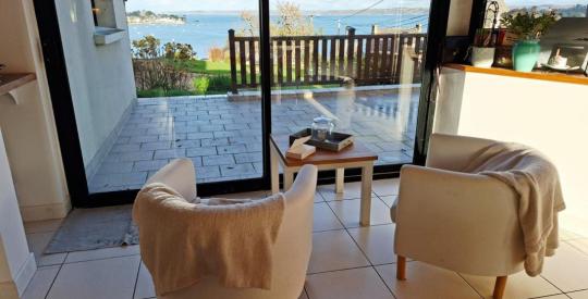 Exposée plein sud, la maison profite d'une lumière traversante exceptionnelle. Chaque ouverture semble cadrer un tableau marin différent, offrant une présence constante de l'océan au gré des saisons.