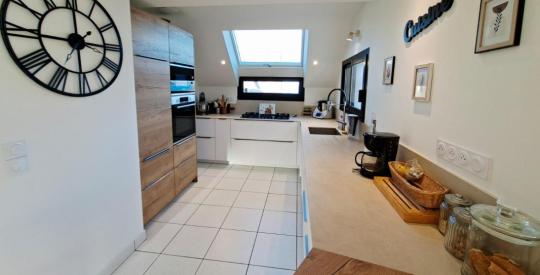 La cuisine haut de gamme, soigneusement aménagée et équipée, s'habille d'un magnifique plan de travail en granit. Une arrière-cuisine attenante offre fonctionnalité et discrétion, idéale pour un quotidien fluide.