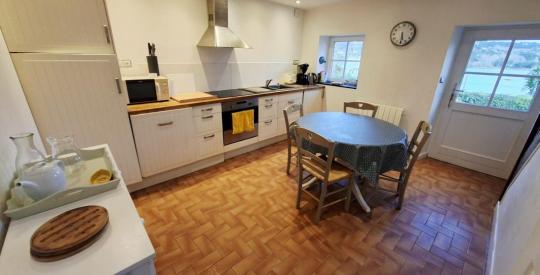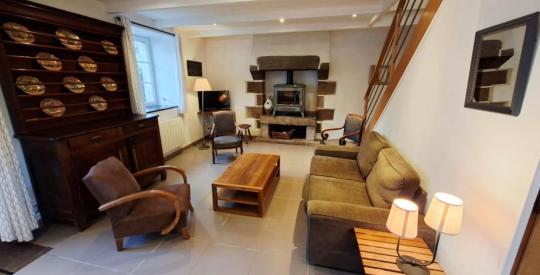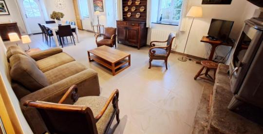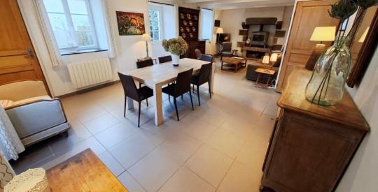 La maison s'ouvre sur une pièce de vie de 37 m², lumineuse et pleine de caractère, agrémentée d'une cheminée ancienne avec poêle à bois, véritable cœur de la maison, idéal pour des moments conviviaux en toute saison. Dans son prolongement, une cuisine de 15 m² complète harmonieusement l'espace de vie. Ce niveau est complété par un wc.