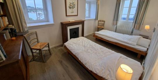 À l'étage supérieur, vous découvrirez deux belles chambres, dont une offrant de sublimes vues mer et une double exposition, véritable invitation à la contemplation. Une salle d'eau et un WC complètent ce niveau.