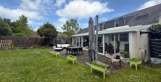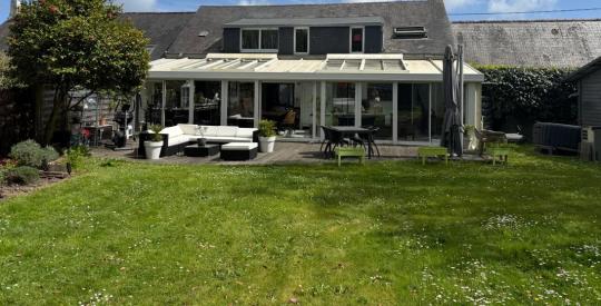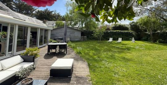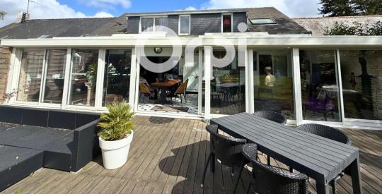 GUÉRANDE, proche La Baule et à 10 min de Saint-Nazaire : dans un hameau calme et verdoyant, découvrez cette maison originale de 175 m², construite en 1975. Elle propose de multiples pièces de vie accueillantes — hall, grande salle polyvalente idéale pour accueil ou loisirs, séjour avec extension vitrée chauffée par un poêle donnant sur un jardin ensoleillé, cuisine de type professionnel — ainsi que 5 chambres, dont des espaces cocoon au rez-de-chaussée et à l'étage avec salles d'eau. Attique aménageable, terrasse, dépendance/maison d'amis, garage, parking intérieur et extérieur complètent ce bien. Possibilité d'ajouter un petit locatif sur parcelle non attenante. Maison coup de cœur, à visiter rapidement. Contactez-nous pour plus d'informations et une visite.