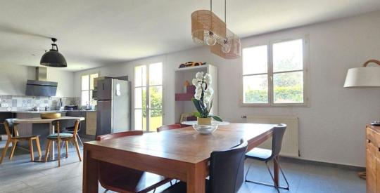 Construite en 1998, elle se présente en très bon état car rénovée et redistribuée en 2019 est idéale pour une grande famille grâce son entrée lumineuse et spacieuse qui intègre un ascenseur pour accéder à l'étage, son salon séjour de plus de 65m2 convivial ouvert sur sa cuisine aménagée équipée ainsi qu'une chambre au rez de chaussé pour une vie de plain pied. L'étage se compose de 4 chambres spacieuses dont une suite parentale et une salle de bain.