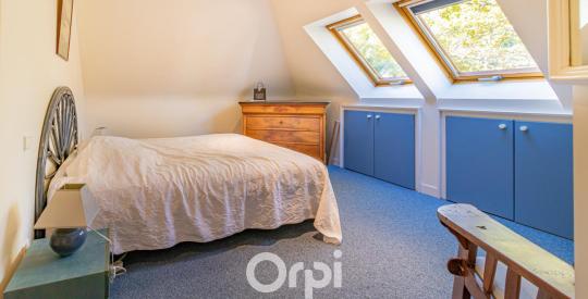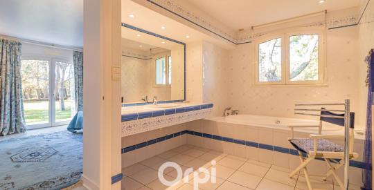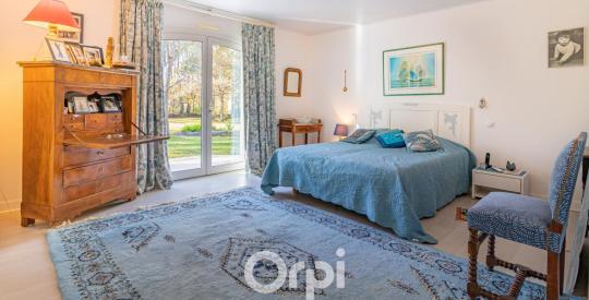 La suite parentale en rez-de-chaussée offre un véritable havre d'intimité, avec sa salle de bains privative, son dressing et son accès direct au jardin.