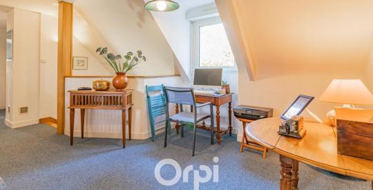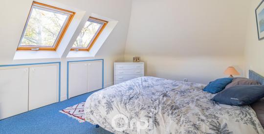 À l'étage, trois chambres lumineuses, un dortoir pensé pour les enfants et un espace bureau invitent à la détente et au télétravail dans un cadre inspirant.