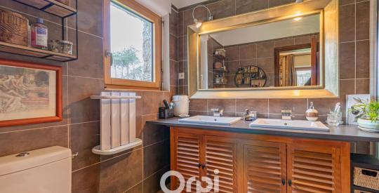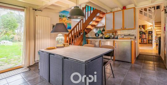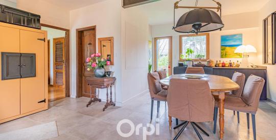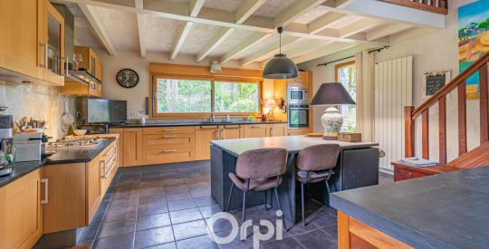 Le vaste séjour et ouvert sur une terrasse et le jardin arboré, invite à profiter pleinement de la lumière et de la nature environnante. Une grande cuisine moderne, spacieuse et fonctionnelle, ainsi qu'un espace bureau et une buanderie, complètent l'espace de vie et favorisent des moments conviviaux en famille.