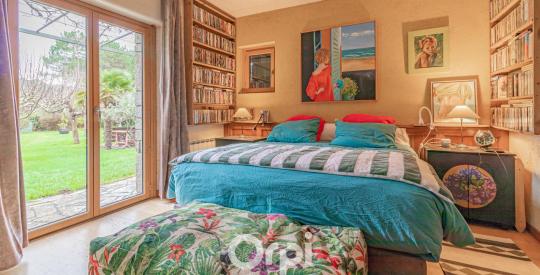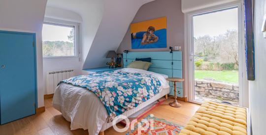 La suite parentale au rez-de-chaussée dispose d'une salle d'eau et d'un accès direct au jardin. À l'étage, quatre autres chambres, deux salles de bains et un palier/bureau offrent de belles possibilités pour les enfants, les invités ou le télétravail.