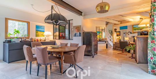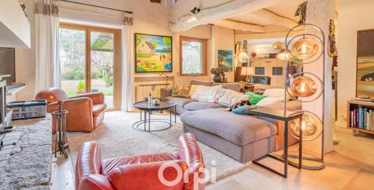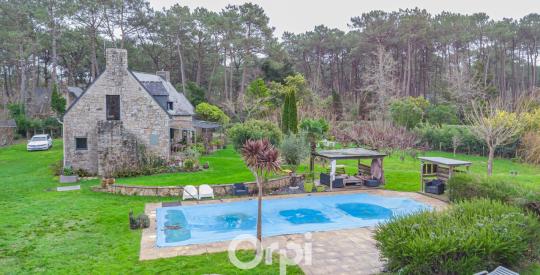 L'agence ORPI AFM IMMOBILIER vous présente cette charmante longère de 215 m2, située sur un terrain de plus de 3 000 m² avec piscine (2007), alliant charme traditionnel et confort moderne.