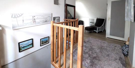Composée de deux chambres au rez-de-chaussée, vous profiterez d'une salle de bain sur le même niveau pour profiter d'une vie de plain-pied. Le salon/séjour, doublement exposé et donnant sur le jardin est idéal pour rece voir. La cuisine attenante est très spacieuse et donne également sur la terrasse. A l'étage : 3 chambres, vaste palier, wc et salle de bain. Buanderie, nombreux rangements et garage indépendant.