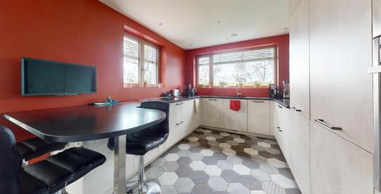 Composée d'un espace de vie spacieux et lumineux grâce à ses baies vitrées XXL, vous apprécierez partager des moments en famille dans la cuisine entièrement équipée aux prestations soignées.