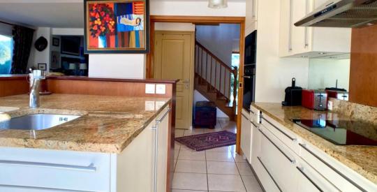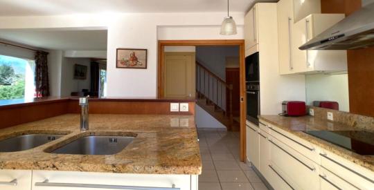 au rez-de-chaussée : une entrée, une chambre parentale avec dressing, une salle d'eau avec douche à l'italienne et wc indépendant, un très grand salon-séjour de plus de 50 m² orienté Sud-Ouest, une cuisine aménagée et équipée ouverte sur le séjour et donnant sur la terrasse exposée Sud.