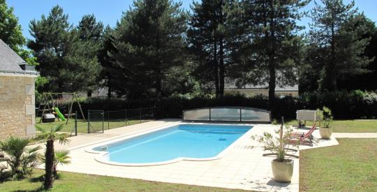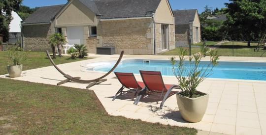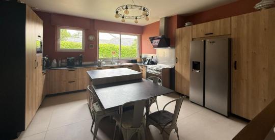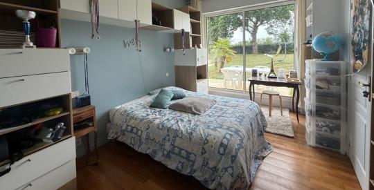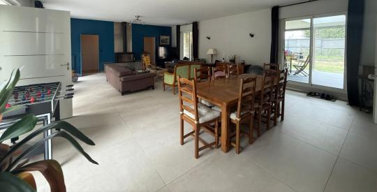 GUERANDE, dans un domaine, sur 2000m2 de terrain cette très belle maison entièrement de plain pied vous ouvre les portes de sa grande pièce de vie ! Hauteurs sous plafond, lumière traversante, insert, carrelage moderne, accès direct sur un patio couvert... Vous accédez ensuite à la grande cuisine parfaitement équipée et aménagée de façon moderne, complétée par une grande buanderie-cellier; à suivre une première suite parentale avec douche, à l'opposé une autre suite parentale aussi bien aménagée de placards et sanitaires, deux chambres avec leur salle de bain dans un couloir complètent l'ensemble du bien familial. C'est une construction de qualité, à l'allure architecturale ravissante habillée de pierres qui vous permettra de vivre entre Guérande et La Baule, au milieu d'un jardin planté et avec un grande piscine couverte; un double garage et un carport vous permettront de mettre à l'abri véhicules ou bateau. Tout est prêt pour vous accueillir dans votre nouvelle demeure chaleureuse et moderne !