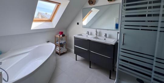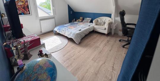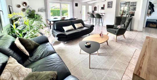 Charmante maison à vendre quartier prisé du Souchais d'une superficie de 140m2 habitable et 164m2 plancher, idéale pour une vie de famille, proposant un cadre de vie agréable et fonctionnel. Édifiée en 2002 et en très bon état, cette maison offre en rez de chaussé un espace de vie lumineux comprenant un salon séjour cuisine aménagé équipé environ 50m2, une suite parentale avec salle d'eau, une grande buanderie et un double garage de 32m2, borne de recharge pour voiture électrique. A l'étage, une suite parentale avec salle d 'eau d'environ 30m2 au sol, 3 autres chambres, un wc séparé et une salle de bain avec douche et baignoire. Vous apprécierez la terrasse et le jardin privatifs, parfaits pour profiter des beaux jours, ainsi que les places de parking intérieures et extérieures pour votre confort. La maison bénéficie d'équipements pratiques et d'une conception savamment optimisée.