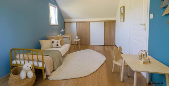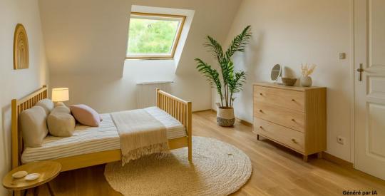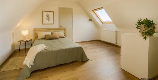 Spacieuse et lumineuse, elle est composée rez-de-chaussée d'une entrée avec placard, un salon-séjour accueillant, ainsi qu'une grande cuisine semi-ouverte avec verrière, une grande chambre avec salle de bain.