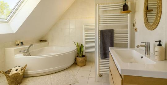 À l'étage, vous trouverez trois chambres généreuses, un bureau et une salle de bain confortable.