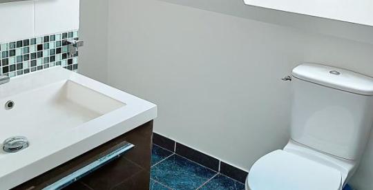 En demi niveau, vous bénéficierez d'une belle chambre avec sa salle d'eau.