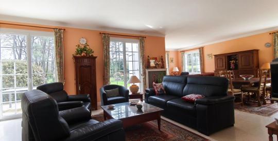 Nichée au cœur d'un magnifique parc arboré sans vis-à-vis, cette demeure d'environ 230 m²au sol séduira les amoureux des grands espaces, ainsi que les passionnés de chevaux ou de projets de vie au vert.