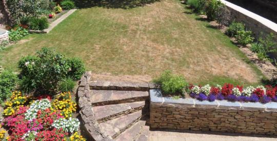 Profitez de moments de détente dans le jardin de 460 m2 clos de murs en pierres, parfait pour les loisirs extérieurs.